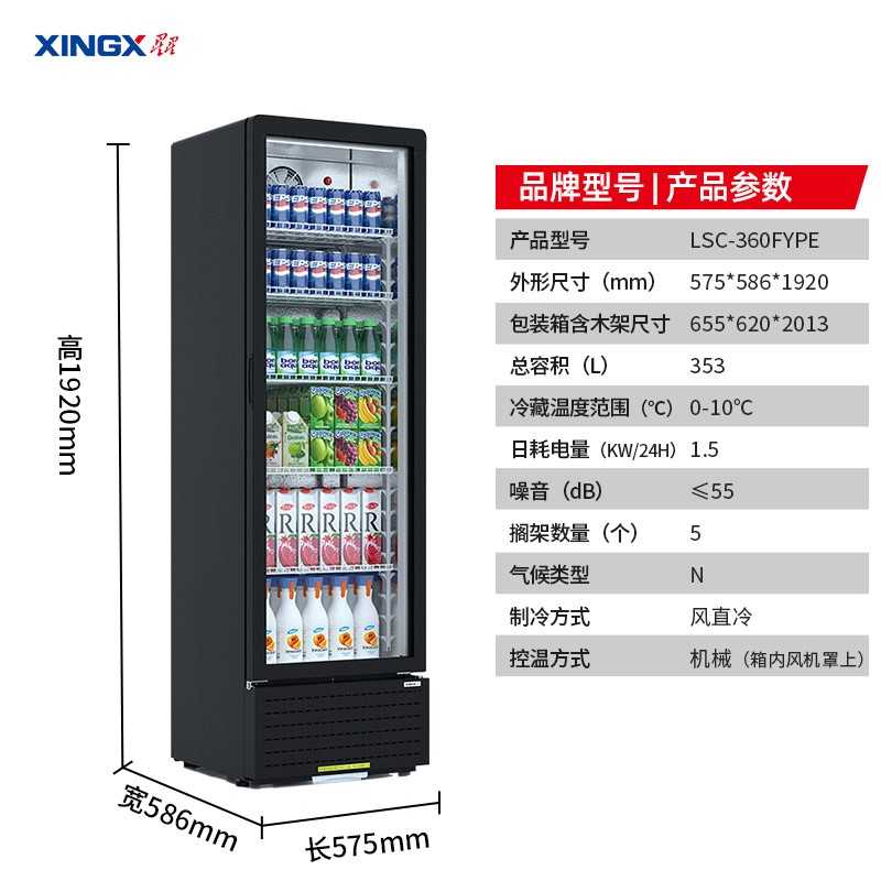 无灯箱圆角展示柜风直冷LSC-360FYPE