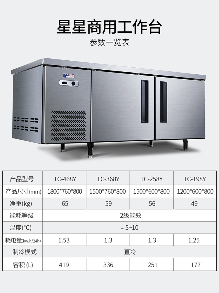 XINGX/星星 TC-258Y 1.5米 冷藏 数字温显 工作台