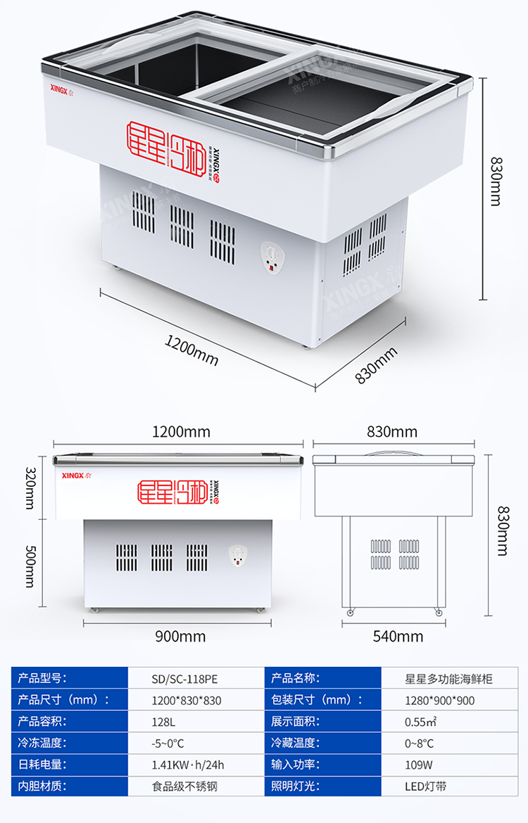 XINGX/星星 SD/SC-118PE 海鲜柜
