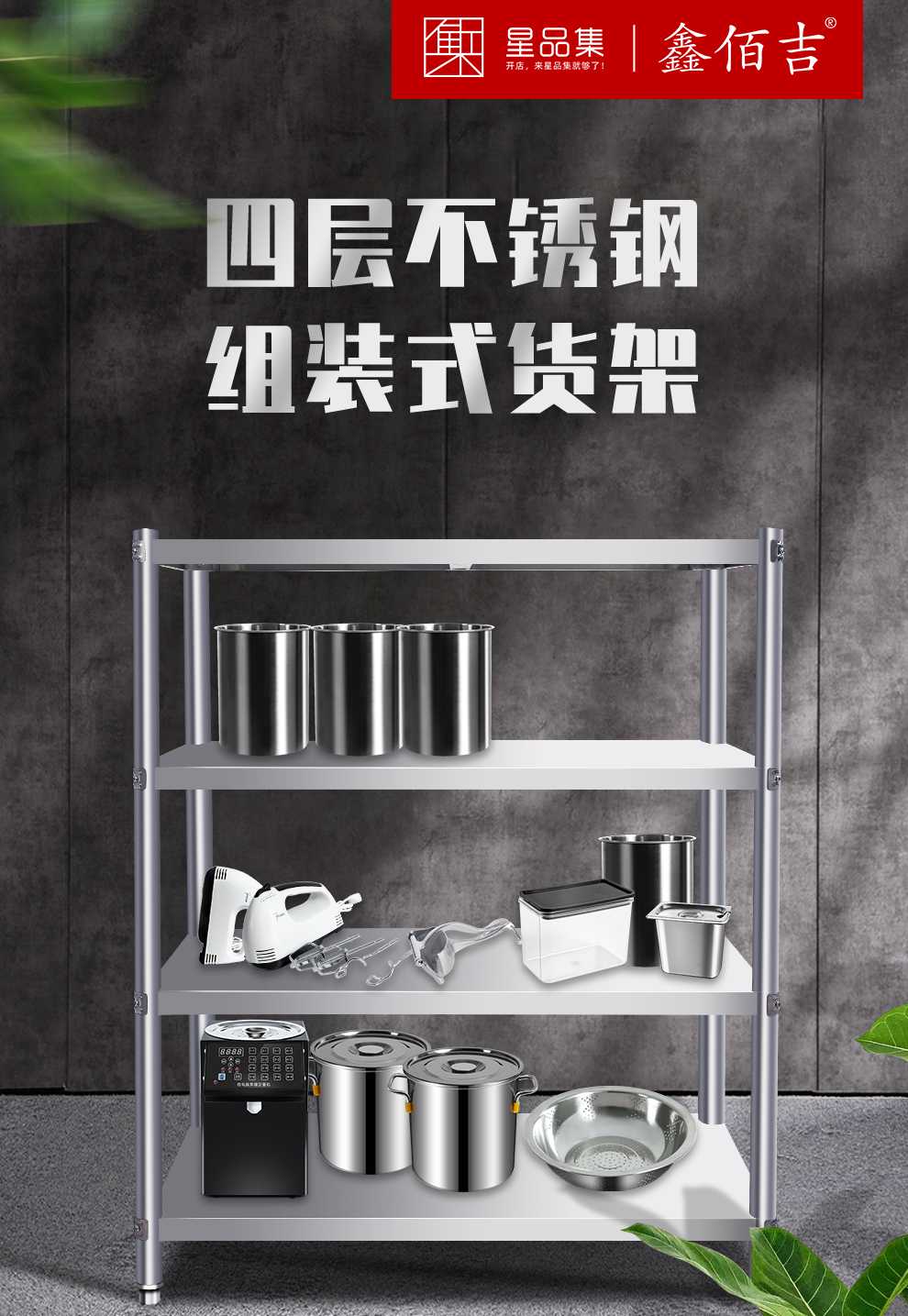 XBG-HJ-A4-12050-07 四层不锈钢组装式货架