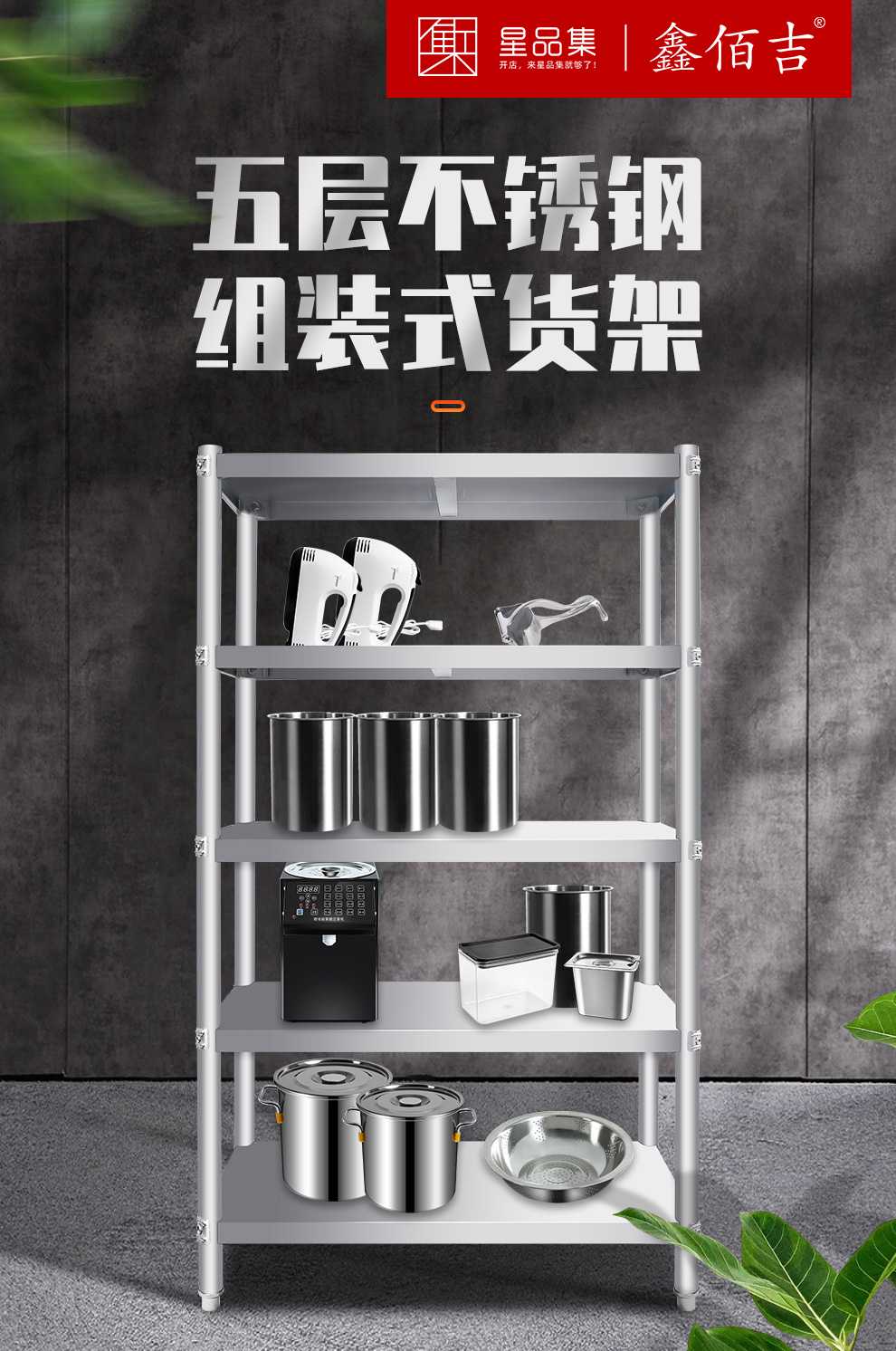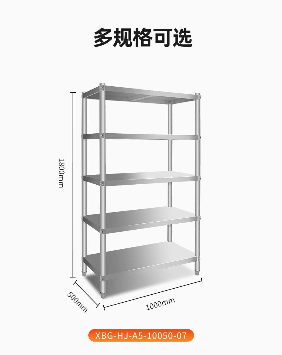 XBG-HJ-A5-12050-07 五层不锈钢组装式货架